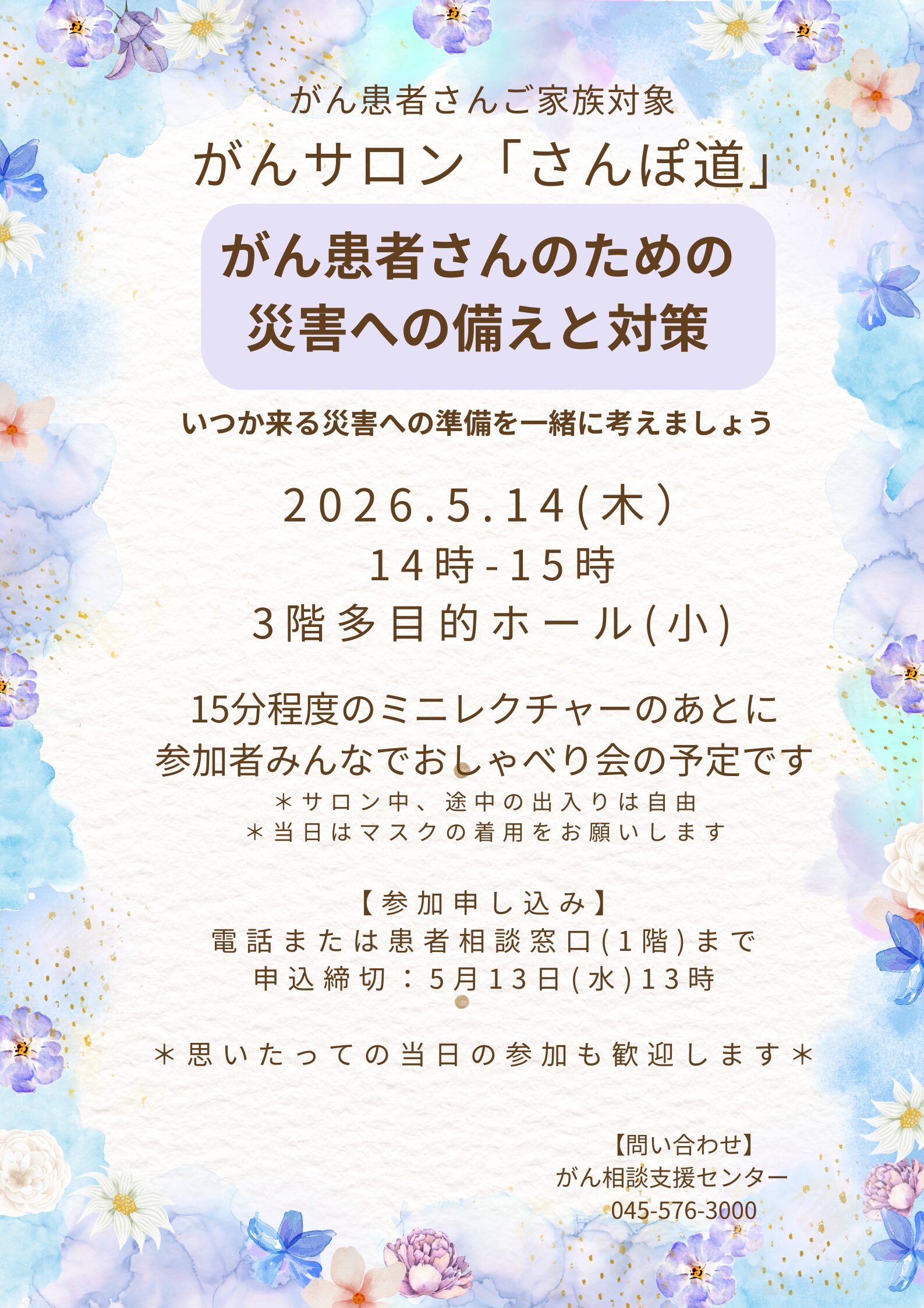 在5/14(星期四)举行NEW[参加者招募]癌患者的聚会癌沙龙"散步道路"