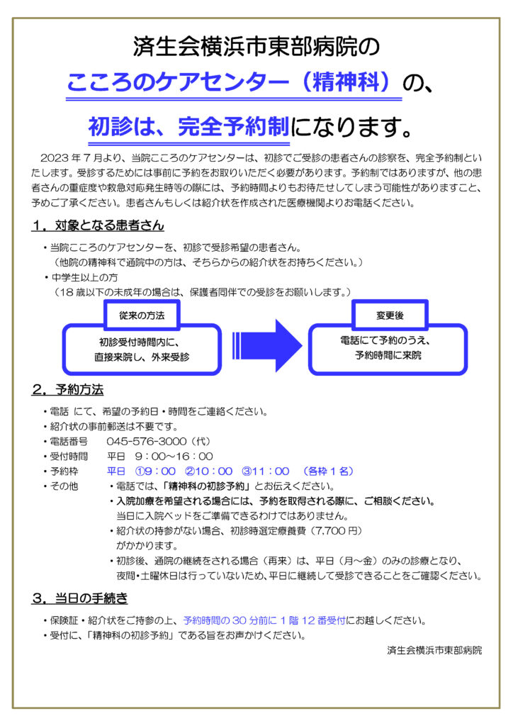 心的关怀中心的初期诊断的接受诊断自2023年7月1日起变成完全的预订制。