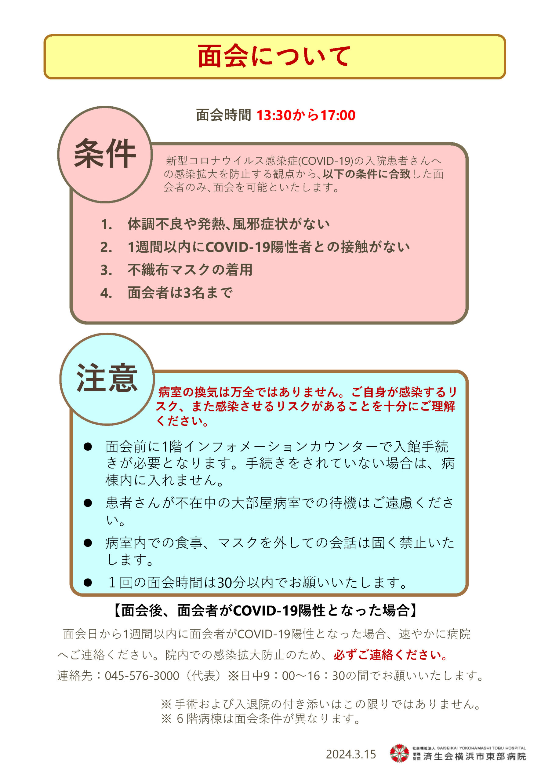 被赐予理解合作,自日常起感谢对新型冠状病毒感染对策的这家医院的行动。 如下所示正自2024年3月15日星期五起改变关于见面的向导。 在ogo覧领受,见面之际关于以下的"见面"敬请遵守注意事项。